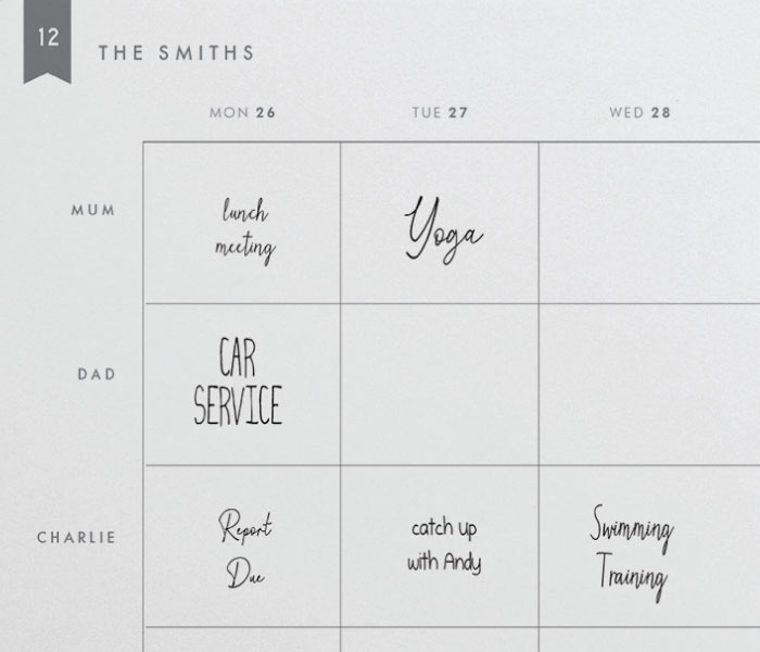 I was struggling with organising the family and this has made the schedule much clearer and easier to read.